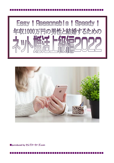 私はこれまで17年間結婚情報コンサルタントとして、「ネット婚活」で年収1000万円以上の男性との結婚を成功させた200人以上のお客さんをサポートてきました。今回そこで培った「ネット婚活」成功のための情報を皆さんに本書「年収1000万円以上の男性と結婚するためのネット婚活上級編2022」として伝授します。