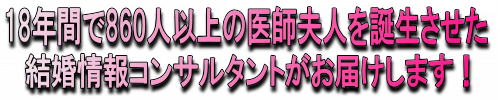 私はセレブメーカーズ.comという医師との結婚に特化した結婚情報提供サービスを行っていますが、そこでは780人以上の医師夫人が誕生しました。約半分は「お見合い」や「友人・知人の紹介」がきっかけですが、残りは上記のサービスを活用し全くのゼロから医師と出会い交際に繋げ結婚しました。20年前までは考えられなかった事態です。また前述の通り200人以上がこれらのサービスを利用して年収1000万円以上の男性と出会い結婚しました(数字は2020年9月末現在)